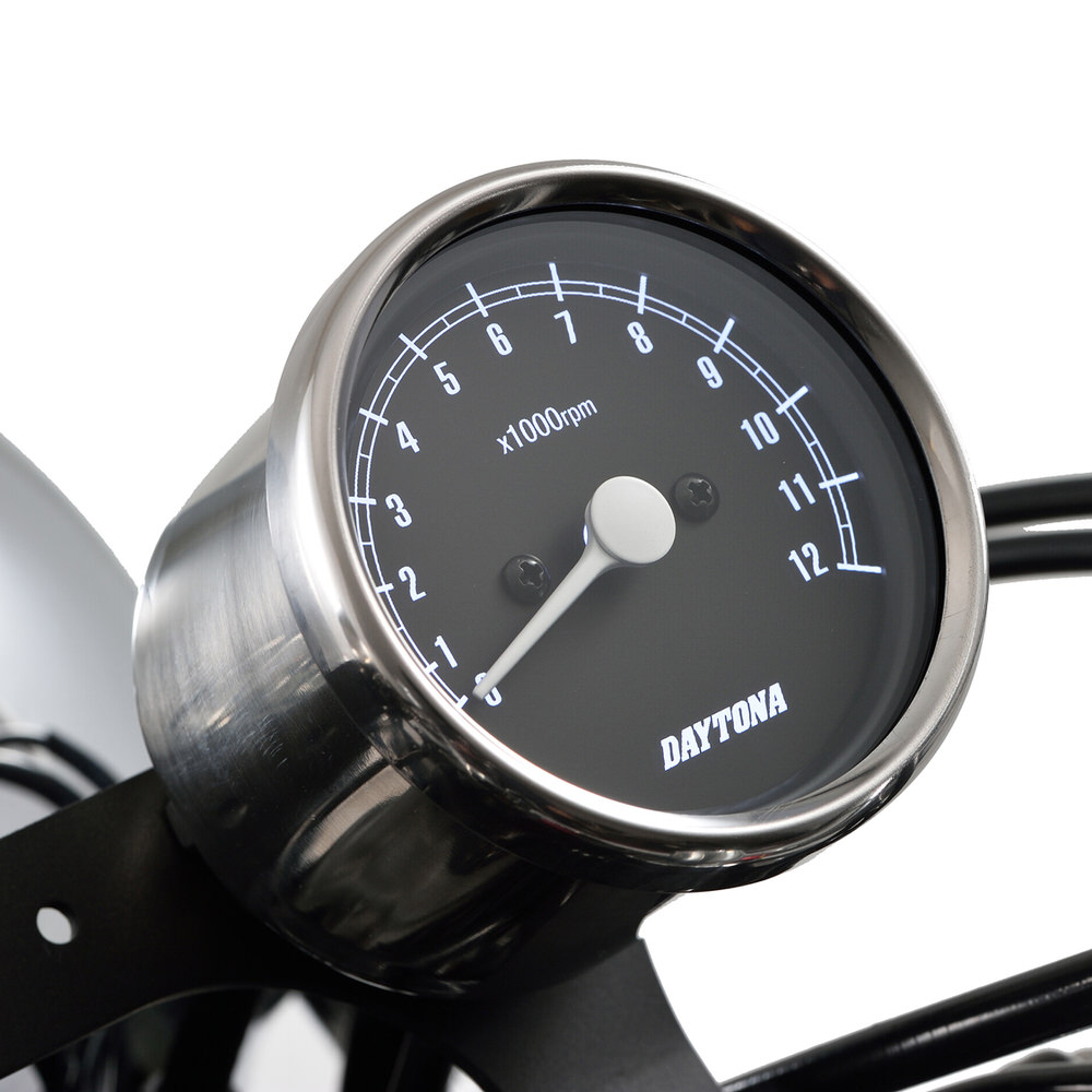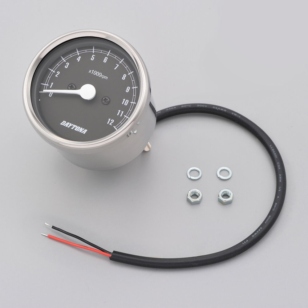 機械式タコメーター φ60 ホワイトLED照明 12,000rpm ステンレスボディ ブラックパネル DAYTONA(デイトナ)