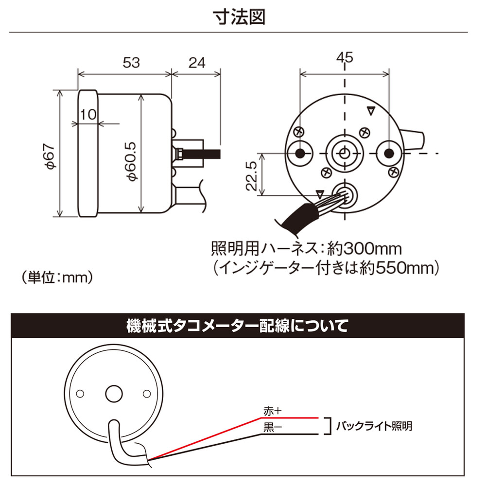 ※タコメーターはSRなどに採用されている「ギヤ比1:5」(クランク5回転=タコメーターケーブル1回転)」規格の純正機械式タコメーター(タコメーターケーブルを使用する車両)のみ適合。機械式タコメーターが標準装備されていない車両(FTRやTWなど)はもちろん、ギヤ比が異なる車両には使用できません。