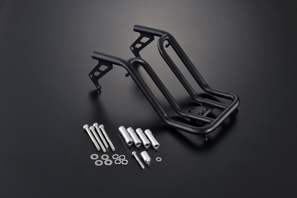 センターフレーム上部に装着できるキャリアです。本体の下部にはフック(4箇所)を引っ掛けることができるピンを溶接してあります。車体中心に荷物を積載できる為、走行の妨げになりにくいです。幅:190mm※最大積載量 3.0Kg【車種】CT125(JA55)【材質】スチール【表面処理】パウダーコートブラック