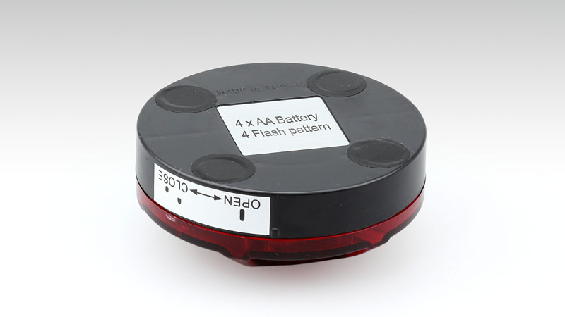トラブル時のやむを得ない停車時等に、赤色の点灯により存在をアピールし周囲へ注意を促すランプとしてご使用が可能です。単3乾電池4本(別売)で動作し、背面のマグネットにより車体の金属部分やガードレールへの設置が可能です。【使用方法】電池を入れた状態でスイッチのボタンを押すと作動します。押すたびに点灯パターンが変更になります。点滅 ⇒ 速点滅 ⇒ 回転 ⇒ 点滅+回転 ⇒ OFFと発光が変化します。底部にマグネットが配されているので、スチール素材の部位や壁などに貼り付ける事が出来ます。緊急事態で使用出来る様に、電池の状態はこまめにチェックして下さい。【寸法】直径93mm 高さ40mm【材質】樹脂ボディ