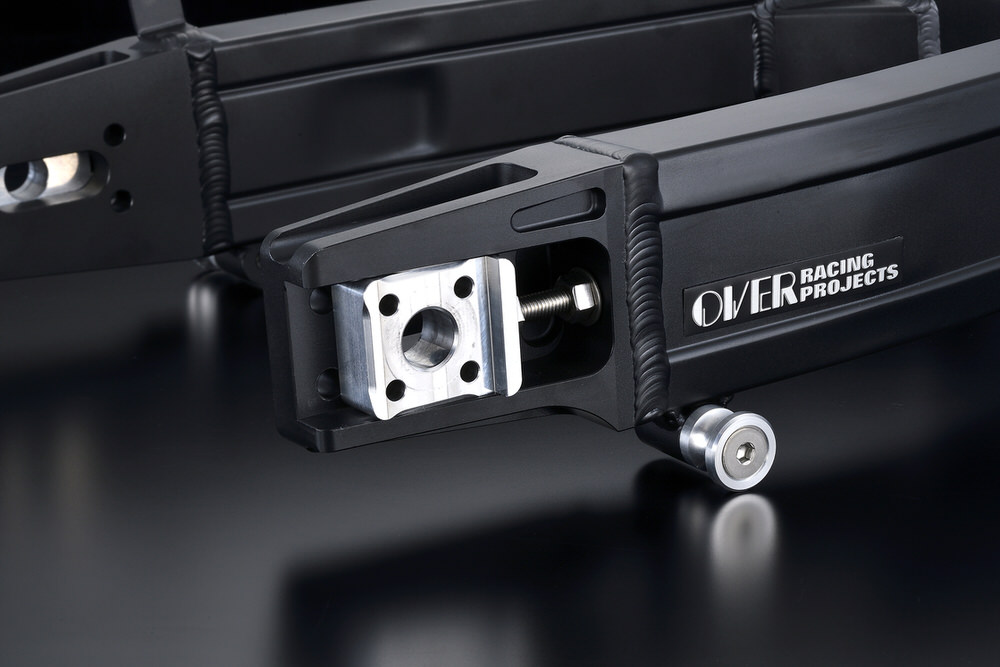 CBR400R(2019年)用スイングアームType7が登場。純正は70×30mm鉄パイプですが、80×40mm目の字断面パイプを使用する事で軽量でありながらも適度なしなりを有し、強度や剛性に関しても純正に比べ高い水準で確保しています。このOVER製スイングアームの特徴とも言える、しなり、強度、剛性の絶妙なバランスは大幅な車体性能向上に繋がっています。またバネ下の軽量化によって、路面からのインフォメーションがダイレクトに伝わりやすくなり、より直感的な操作感で積極的なコーナーアプローチを可能とします。メインパイプ:80x40mm目の字断面(7N01材)アクスルブロック:A5083S材重量:約4.7kg(純正7.7kg)ブラックガンコート仕上げ純正寸法(純正ホイール&タイヤサイズ対応)純正チェーンカバー取付け可能ピボットニードル/ボールベアリング仕様(付属)スタンドフックカラー付属