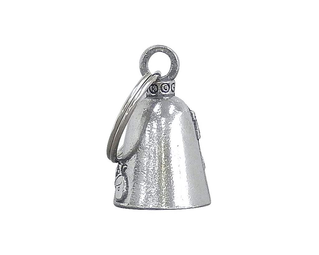 商品説明:『バイカーベル』とも呼ばれ、アメリカのバイク乗り達が身に着けている魔除けのベルです。アメリカのバイカーの間では、道路には『Evil Road Spirits』と呼ばれる道路の悪魔がいるという伝説があり、その悪魔が事故を起こしたり、バイクを故障させると考えられています。このガーディアンベルを身に着けることによって道路の悪魔をベルの中に閉じ込め、ベルの音色で悪魔を道路に落として事故などから身を守る、という意味があります。