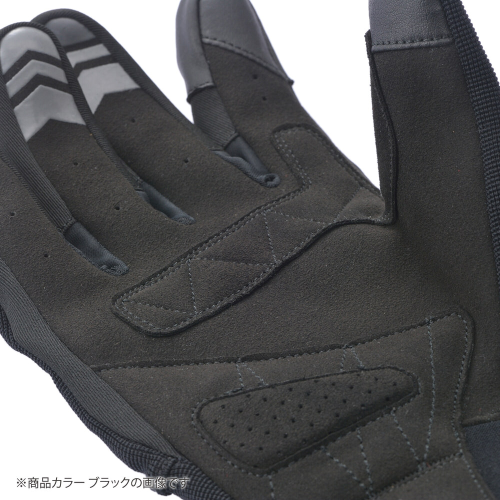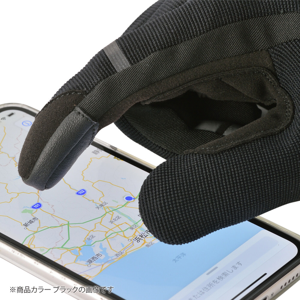 抜群の装着感。ストレッチ生地を多面に使用し、ソフトタイプのナックルプロテクターを内蔵したモデル。操作性を最も重視したコストパフォーマンスに優れるライディンググローブ。手の平側には耐摩耗性が高く、やわらかいグローブ向けの合皮を使用し、高い装着感。タッチパネル対応。素材:ナイロンプロテクター:TPR
