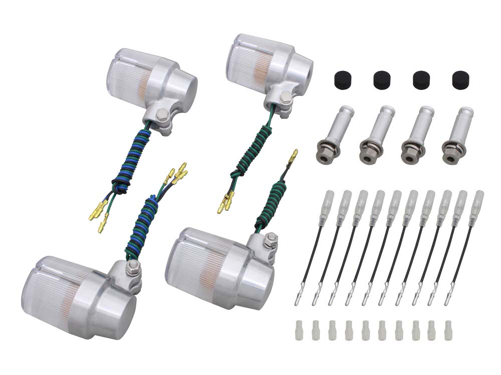 キャストウインカーシリーズのネオクラシックなスーパーバイクタイプ!取り付けに必要なステー類を一式セットにした車種専用ボルトオンキットです。■鋳造アルミボディ。バフ仕上げ/ブラック塗装仕上げをご用意■定番のヨーロピアンタイプ■一台分に必要なパーツを全てパッケージング、配線加工不要のボルトオン設計■補修パーツも充実、安心してご使用して頂けます。■付属電球:フロント(W球)12V23/8W/リア(S球)12V23W※変換コード付き※フロントポジションランプ点灯します。【キット内容】1.ウインカー本体×4個2.ウインカーステーロング×4本3.M10X30ボルト×4本4.防水スポンジ×4個5.変換コード×10本6.M10ワッシャー・スプリングワッシャー×各4個