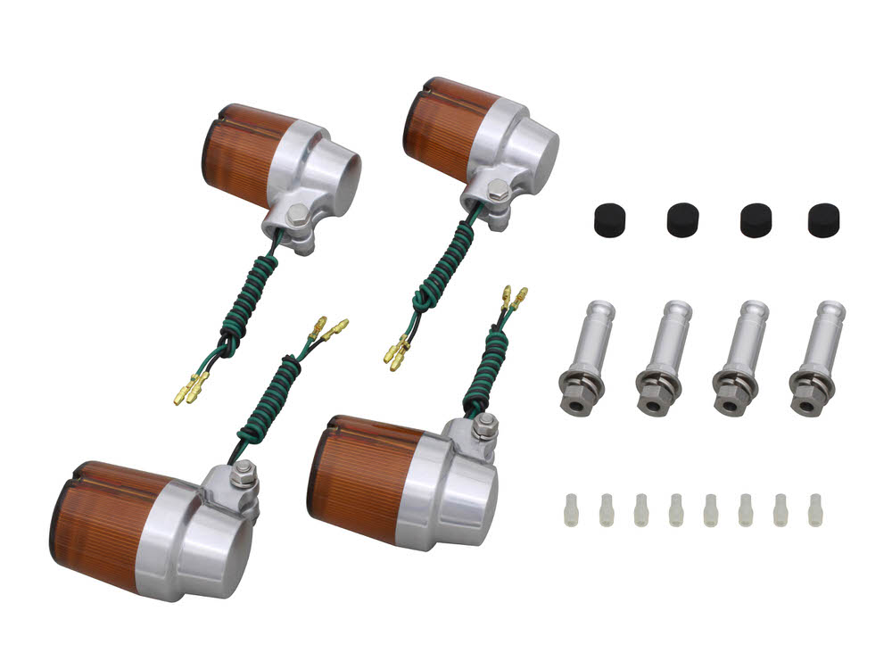キャストウインカーシリーズのネオクラシックなスーパーバイクタイプ!取り付けに必要なステー類を一式セットにした車種専用ボルトオンキットです。■鋳造アルミボディ。バフ仕上げ/ブラック塗装仕上げをご用意■定番のヨーロピアンタイプ■一台分に必要なパーツを全てパッケージング、配線加工不要のボルトオン設計■補修パーツも充実、安心してご使用して頂けます。■付属電球:フロント(S球)12V23W/リア(S球)12V23W【キット内容】1.ウインカー本体×4個2.ウインカーステーロング×4本3.M10X30ボルト×4本4.M10ワッシャー・スプリングワッシャー×各4個5.防水スポンジ×4個