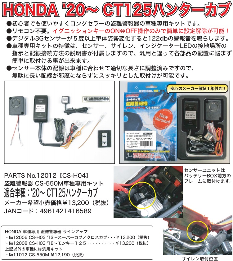CS-H04 盗難警報機 CS-550M 車種専用キット PROTEC(プロテック) CT125ハンターカブ(JA55)