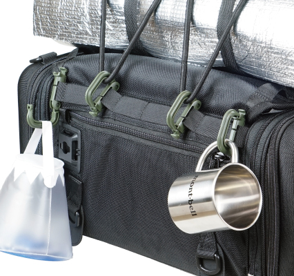 25mm(1インチ)幅のウェビングにD型カラビナを増設する汎用アイテム。 簡易プッシュロック機構はグローブをしたままでも開閉でき、D型カラビナがバッグなどの取付面に対して垂直に固定され方向が決まるので、小物の吊り下げなどに大変役立ちます。 ※車両牽引やクライミング、重量物への使用は絶対にしないでください。数量:4個入り寸法:38×55×11mm