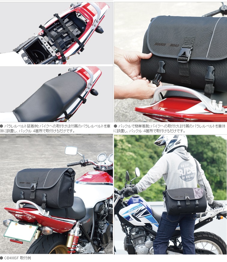 普段使いからワンデイツーリングに最適な容量約18リットルの防水バッグ。バイク積載時はシートバッグとして、バイクを降りた後はメッセンジャーバッグに早変わりする、積んで良し!身に着けて良し!な2WAYライディングバッグです。 車載時は付属のパラレルベルトを車体にセットしておけばバックルのみで着脱がとっても簡単、面倒な積み下ろしがとっても快適になります。降ろした後は付属のショルダーベルトで肩掛けができ運搬が楽なのはもちろん、両手が空くのでさらに作業効率もアップします。 外側にはフラップ部、背面部に差し込みファスナー付きポケットを装備、フロント、ボトム、バックにコの字型のパネルを装備しているので積載安定性と内容物のプロテクターとなり車体とバッグが一体化しがっちりしっかりマウントできるので荷崩れの心配が軽減されます。SIZE:W40×D20×H24cm(最大)容量:17〜18リットル