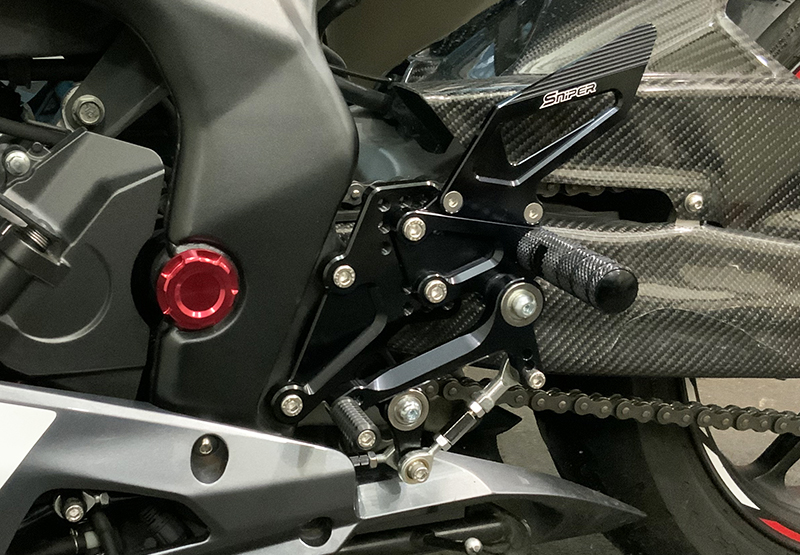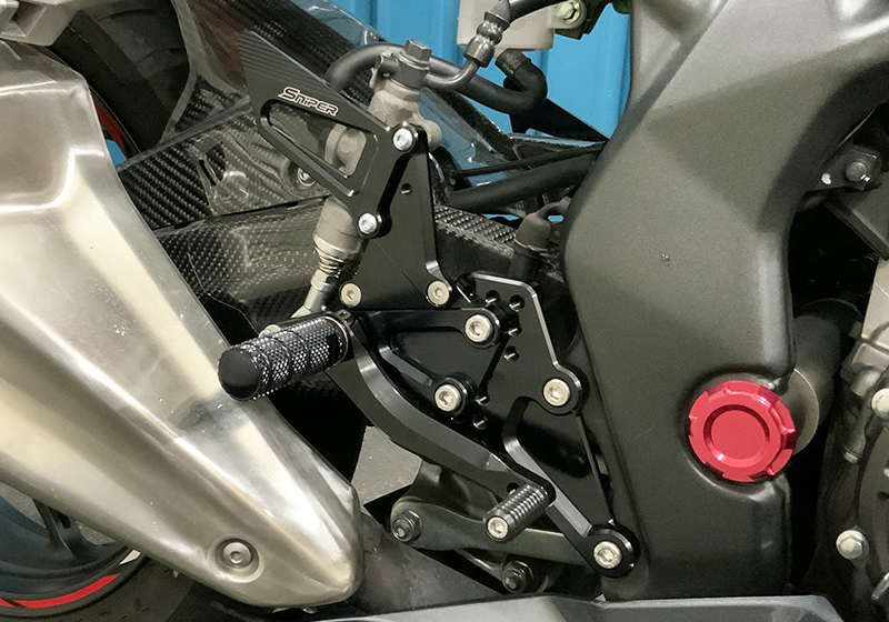 ABS対応ストリート向け3ポジションとレース車両向けの6ポジションが使用可能です2020年モデルのオプション装備クイックシフター装着車は未確認ですのでご注意ください対応機種CBR250RR MC51CBR250RR MC51 ABSCBR250RR MC31(インドネシア仕様)CBR250RR HRCレースベース車ABS対応ストリート向3ポジションABS車両および標準車両に対応しており純正ブレーキホース、ブレーキスイッチが使用可能逆シフトチェンジは不可、無加工で取り付け可能左右ペダル先端部は2カ所のポジション変更可能ステップはノンスリップ性に優れた切削ローレット加工スピンドル部はダブルベアリングを内蔵ABS対応および標準車両 ストリートポジション/逆シフトチェンジ不可55mm Back / 50mm Up55mm Back /62.5mm Up67.5mm Back /62.5mm Upレーシング用6ポジション42.5mm Back / 50mm Up42.5mm Back /62.5mm Up42.5mm Back /75mm Up55mm Back /75mm Up67.5mm Back / 50mm Up67.5mm Back /75mm Upレーシング用6ポジション(ストリートポジションも使用可)レース車両専用になりますのでABS車の場合はブレーキホースの変更が必要ブレーキスイッチの使用はできません、リンクロッドを使用ぜず直接シフトアームにシフトロッドを繋いでくださいシフトロッドはポジションに合わせて別途ご用意下さい取付けに関しまして取付けは整備士など資格のある熟練した方に必ずご依頼ください追加のボルト類は不要、無加工で取り付け可能お届けの状態は仮組み状態ですのでボルト類は本締め願いますねじロック剤などでボルト類の緩み防止もしてください部分的にスペアーパーツもご用意しております
