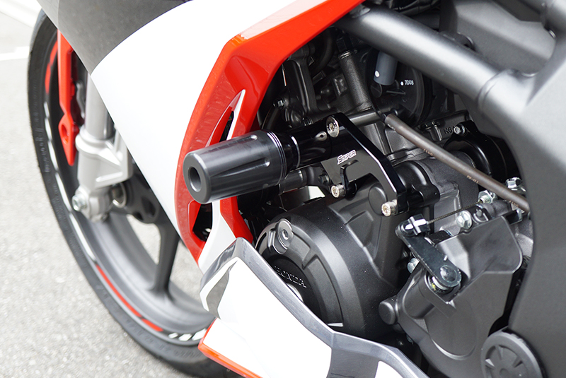 対応機種 CBR250RR MC51転倒時にサイドカウル、エンジン部へのダメージを軽減しますカウルへの加工は必要はありません、無加工で取り付けが可能ベースブラケットをスチールシャフトで連結し高い剛性を発揮します車体に左右のアルミベースブラケットとスチールシャフトを均等に仮組みしてから本締めし、最後にスライダーを取り付けてくださいねじロック剤などでボルト類の緩み防止もしてください