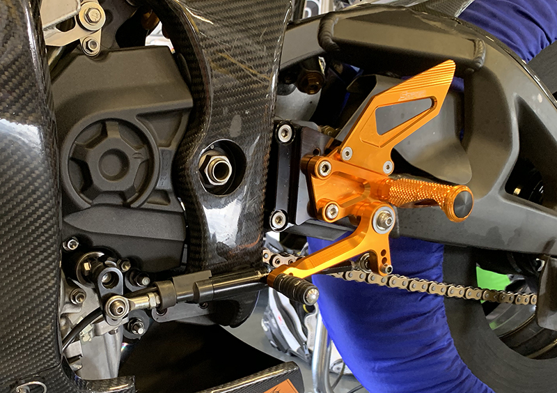 レース専用ステップになりABS車両には対応しておりませんのでご注意ください6ステップポジション、逆シフトパターンも可能左右ペダル先端部は2カ所のポジション変更可能ステップはノンスリップ性に優れた切削ローレット加工スピンドル部はダブルベアリングを内蔵6ステップポジション/逆シフト可能31.5mm Back / 42.5mm Up31.5mm Back / 55mm Up44mm Back / 42.5mm Up44mm Back / 55mm Up56.5mm Back / 42.5m Up56.5mm Back / 55mm Up取付けに関しまして画像のもので全てになりますブレーキ側、ABS車両の場合はブレーキホースは交換が必要マスターシリンダーカップは移設が必要シフト側、シフトロッド、シフトギアアームは付属しませんシフトロッドは純正シフターの場合90mm程度ですがステップポジションに合わせてご準備してくださいシフトギアアーム、純正品はストロークが大きいので社外品に変更を推奨逆シフトの場合、シフトギアアームは純正品は使用不可取付けは整備士など資格のある熟練した方に必ずご依頼ください お届けの状態は仮組み状態ですのでボルト類は本締め願いますねじロック剤などでボルト類の緩み防止もしてください