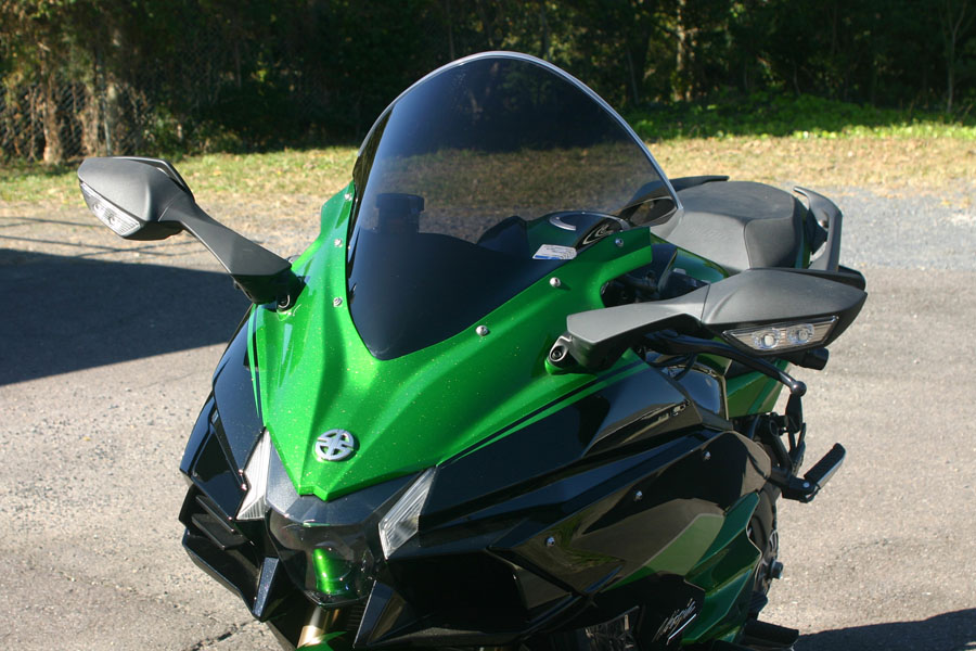 高さ:H2SX SE純正スクリーンとほぼ同等微妙に段付き形状の純正に対し、シンプルなデザインでよりクリアな視界を。