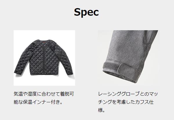 素材表地:ポリエステル92%、ポリウレタン8%/PU(透湿防水加工)裏地:ナイロン100%[着脱式インナージャケット]表地:ポリエステル100%裏地:ポリエステル100%中綿:ポリエステル100%標準装備:EVAソフトプロテクター(バック(脊椎)用/ショルダー用/エルボー用)オプション対応:テクセルチェストプロテクター(一体型タイプ/セパレートタイプ)ストレッチ性をもったシェルでストリートを意識肉厚でしなやかな2種のストレッチ素材を織り込んだ意欲的パーカ。アウター単体で透湿防水ジャケット、インナー装着で防寒防風ジャケット、と2通りの着こなしが可能。