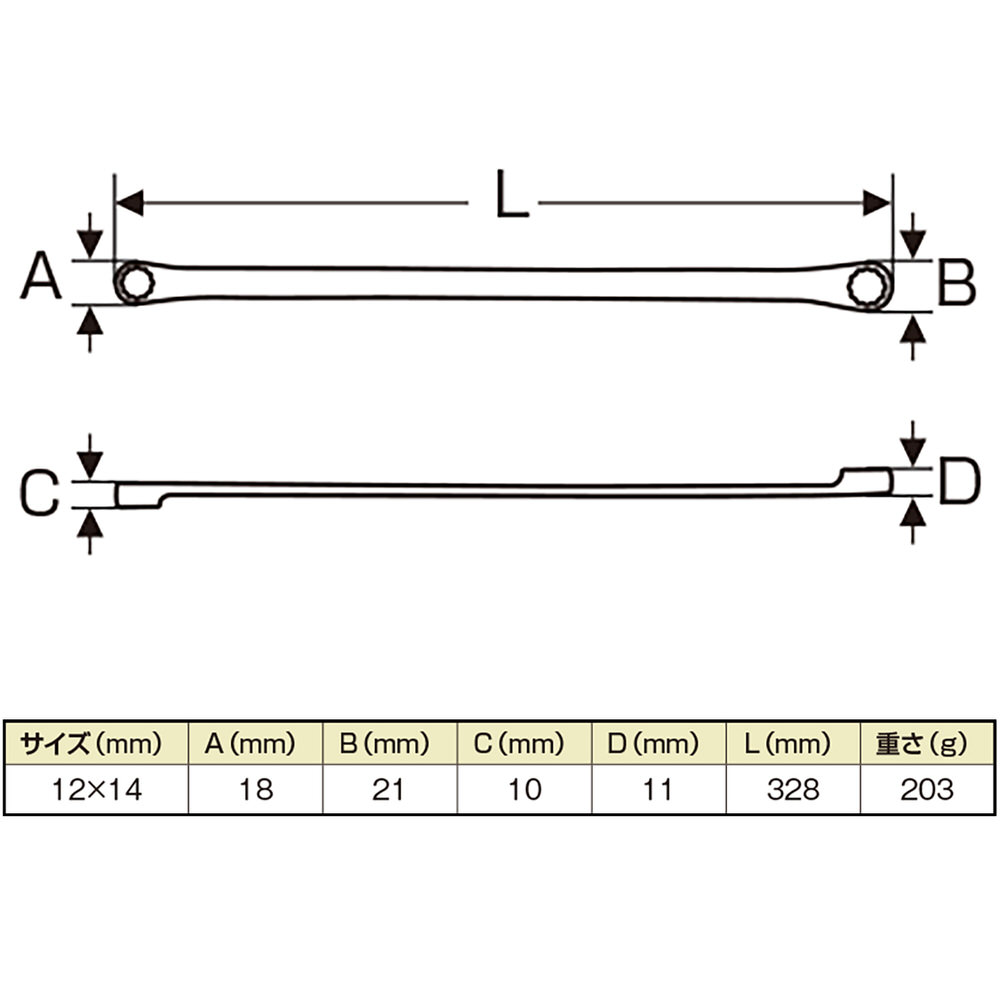 ロングストレートめがねレンチ 12×14mm DAYTONA(デイトナ)