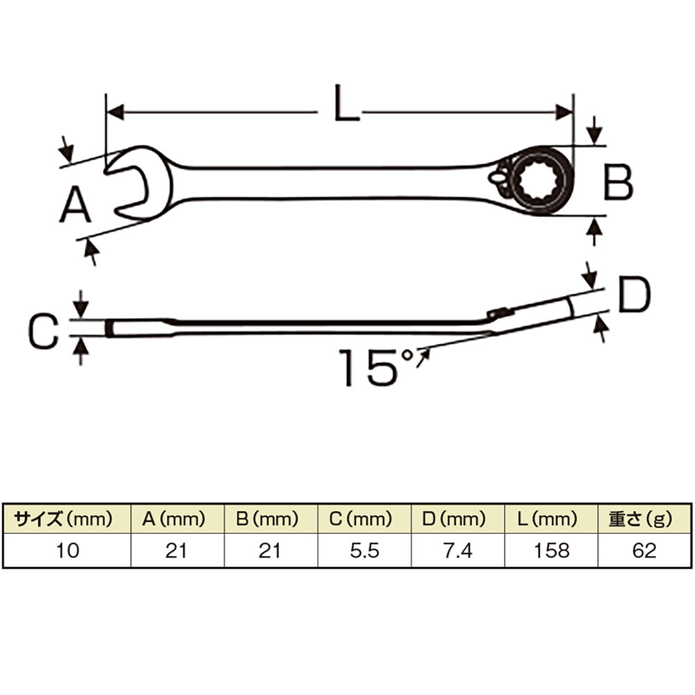 切り替えレバーで正転・逆転の切り替えができるラチェット式メガネレンチ。工具を差し替えることなく早回しができるので、作業効率がアップします。サイズ:10mm正転・逆転の切替レバー付きギア数:72材質:クロムバナジウム鋼