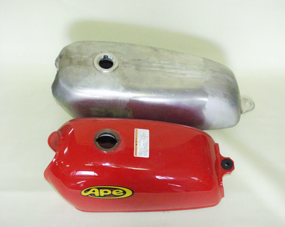 対応車種HONDA Ape50/100※FI(フューエルインジェクション)モデル車輌取付不可品番B012007タンク本体:アルミ製 無塗装 バフ無 容量約7.0L取付ボルトオン、タンクキャップ付属、コック別、純正コック可、純正シート不可。