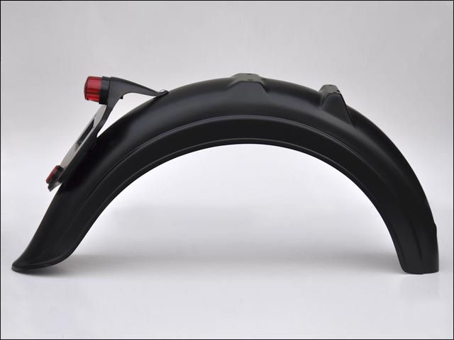エンド部に軽いフレアーを付けた、オーソドックスなフォルムのリアフェンダーです。上質でシンプルなイメージで、車輛のもつ存在感を引き立てます。クラシックテールランプ(ラウンドSタイプ)付きで配線加工済みです。リアフェンダーステー用穴付き。※純正色単色塗装の場合、ナンバー台部分は未塗装(サフェーサーコート)となります。※付属の電球は汎用品です。車体のテールランプを移植するなどして、車体側のワット数に合わせた電球に交換してからご使用ください。※走行中の振動や長時間走行により電球が加熱し、レンズ部分が溶ける場合があります。小振りな形状の電球を使用することを推奨しています。