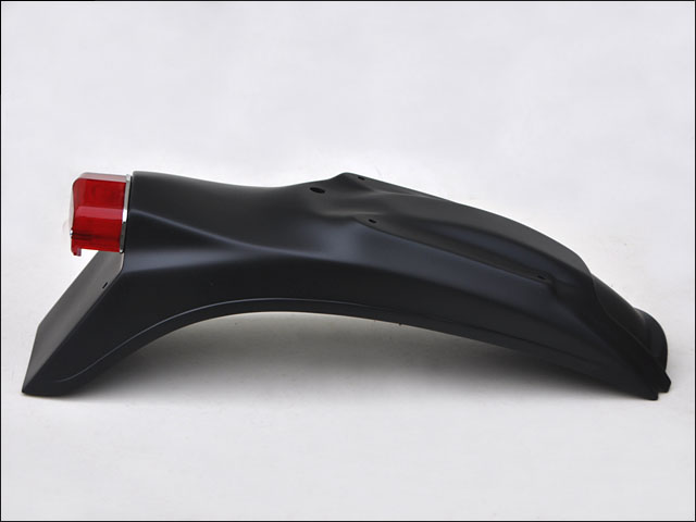 フェスタイルに最適なシンプルなシルエットを持つリアフェンダー。リアフェンダー一体型のテールランプベースに、視認性の高いルーカスLタイプのテールランプがセットされています。本体は軽量なFRP製。各純正色塗装の他、クロームメッキ仕上げと艶消しブラックに対応します。配線加工済みで、ボルトオン装着装着が可能。※別途ナンバーリフレクターをご用意ください。※付属の電球は汎用品です。車体のテールランプを移植するなどして、車体側のワット数に合わせた電球に交換してからご使用ください。※走行中の振動や長時間走行により電球が加熱し、レンズ部分が溶ける場合があります。小振りな形状の電球を使用することを推奨しています。