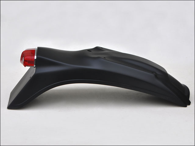 カフェスタイルに最適なシンプルなシルエットを持つリアフェンダー。リアフェンダー一体型のテールランプベースに、小振りでスタイリッシュなルーカスSタイプのテールランプがセットされています。本体は軽量なFRP製。各純正色塗装の他、クロームメッキ仕上げと艶消しブラックに対応します。配線加工済みで、ボルトオン装着装着が可能。※別途ナンバーリフレクターをご用意ください。※付属の電球は汎用品です。車体のテールランプを移植するなどして、車体側のワット数に合わせた電球に交換してからご使用ください。※走行中の振動や長時間走行により電球が加熱し、レンズ部分が溶ける場合があります。小振りな形状の電球を使用することを推奨しています。