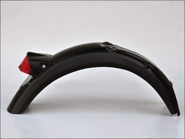 レトロモダンな雰囲気を持ったリアフェンダー。泥よけ効果の高いロングタイプの造形で、ツーリングユースに最適です。テールランプを低い位置にセットする事で低重心なシルエットを演出します。テールランプはノーマルを使用し、ハーネス付きのボルトオン設計。ノーマル同様、純正U字ロックを収納できます。※別途ナンバーリフレクターをご用意ください。※割り型による成形であるため、製品の一部にパーティングライン(型のつなぎ目)があります。型と型のつなぎ目に発生するもので、製品の強度には問題ありません。気になる方は塗装やバフ掛けしてからご使用ください。