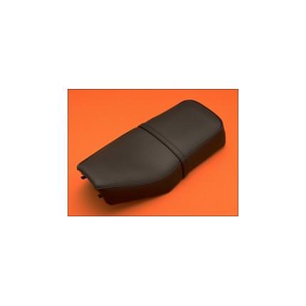 クラシックスタイルの定番ともいえるフォルムのダブルシートです。ノーマルより50mmほど短く、適度な厚みを持ったクラシックフォルムは、ロングライディングでも疲れにくく前側を細く絞り込んだ造形は足付きも良好です。サイズは全長615mm、幅310mm、厚さ42mm。'08モデルまでに適合。※純正シート裏側のシートダンパーを移設しての装着となります。