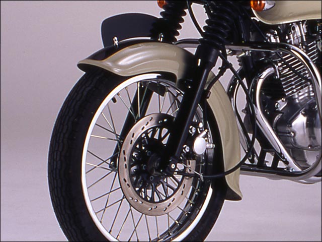 エンド部分の裾が広がって、フレアーの付いた、クラシックムード満点のフェンダーです。長めのフォルムは泥よけとしての機能も優れています。ボルトオンで簡単に装着でき、ボルティーの存在感を高めます
