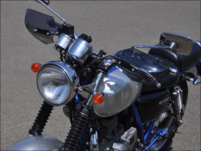 走行風よりライダーの拳や指先を保護するナックルガード。シールド本体はポリカーボネイト製で、色はクリアとスモークから選択できます。十分な強度をもたせた取付けステーは高い風圧を受けてもガタツキが出ないように考慮された形状を持ち、左右のミラーに共締めするだけのボルトオン設計です。