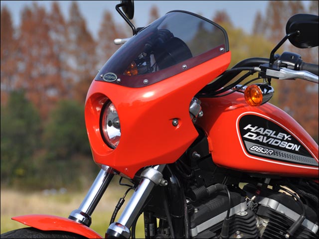 ※2004年以降のXLモデルに適合(バイザーを介してヘッドライトをマウントするモデルに限ります)。確認済適合車種:09-20年XL883N、05-10年XL883L、06-15年XL883R、07-11年XL1200L、08-12年XL1200N、04-09年XL1200R、07年XL50、スポーツスターをよりスポーティなイメージに進化させる、洗練されたデザインのビキニカウル。従来モデルのデザインを踏襲しながらも、スポーツスターの車格にマッチするように徹底的にシェイプされ、シンプルでシャープなラインを柔らかな曲面で融合させています。奇をてらう事なく、スポーツスターにじっくり向き合うことで生み出された造形です。カウル本体はFRP製、裏面サフェースマット仕上げ。スクリーンには強度の高い3mm厚のポリカーボネイト製を採用し、スポーツ走行からツーリングまで優れた整流効果を発揮します。左右と下部の3点ラバーマウントを採用。装着には別途ヘッドライトローダウンキットが必要となります。※装着時、光軸を調整する必要があります。※ハンドル形状によっては純正ハンドルであっても干渉する場合があります。(XL883、XL883Nなどに使用されている標準ハンドルでは、マスターシリンダーに僅かに干渉するため、ハンドル角度を調整する必要があります)