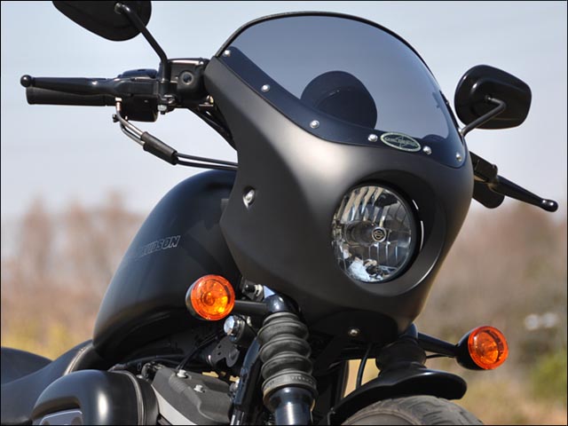 ※2004年以降のXLモデルに適合(バイザーを介してヘッドライトをマウントするモデルに限ります)。確認済適合車種:09-20年XL883N、05-10年XL883L、06-15年XL883R、07-11年XL1200L、08-12年XL1200N、04-09年XL1200R、07年XL50スポーツスターをよりスポーティなイメージに進化させる、洗練されたデザインのビキニカウル。従来モデルのデザインを踏襲しながらも、スポーツスターの車格にマッチするように徹底的にシェイプされ、シンプルでシャープなラインを柔らかな曲面で融合させています。奇をてらう事なく、スポーツスターにじっくり向き合うことで生み出された造形です。カウル本体はFRP製、裏面サフェースマット仕上げ。スクリーンには強度の高い3mm厚のポリカーボネイト製を採用し、スポーツ走行からツーリングまで優れた整流効果を発揮します。左右と下部の3点ラバーマウントを採用。装着には別途ヘッドライトローダウンキットが必要となります。※装着時、光軸を調整する必要があります。※ハンドル形状によっては純正ハンドルであっても干渉する場合があります。(XL883、XL883Nなどに使用されている標準ハンドルでは、マスターシリンダーに僅かに干渉するため、ハンドル角度を調整する必要があります)