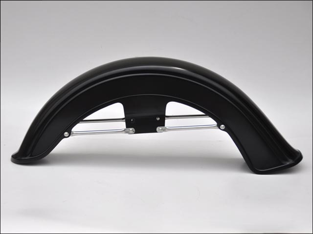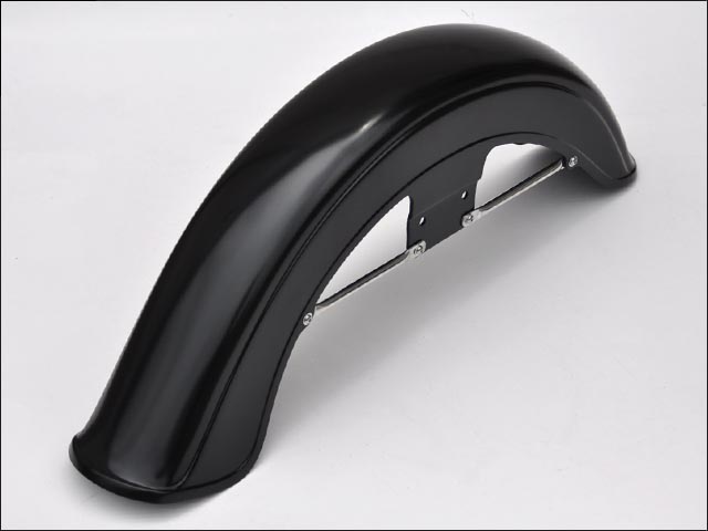 適合車種:1988年以降のスポーツスター(フロント19インチ車)・FXRモデル・1991年〜2005年までのダイナモデルで39mmナローフォーク装着車に対応。深くタイヤを覆う造形と、優雅なイニシャルラインを描くクラシックテイスト溢れるフロントフェンダー。スポーツスターのフロント周りをクラシカルに演出し、重厚感と上質な存在感をまとわせます。本体はFRP製、サフェーサーコート仕上げ、振れ止めのパイプ製ブレースを標準装備します。フェンダー上部に風切りを装着することで、より雰囲気を高めることが可能です。※純正エンジンガードやフロントスポイラー、シックデザイン社「エンジンガード」との同時装着は干渉の恐れがあるため不可となります。※割り型による成形であるため、製品の一部にパーティングライン(型のつなぎ目)があります。型と型のつなぎ目に発生するもので、製品の強度には問題ありません。気になる方は塗装やバフ掛けしてからご使用ください。