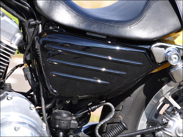 柔らかなラインとリブが特徴的なスポーツスター('04-)用サイドカバー。