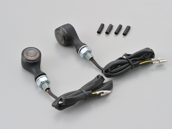 クラシカルで丸み+B2のある形状が特徴のLEDウインカー。LED/通常点灯式材質:アルミニウム(ハウジング)ライトスモークレンズマットブラックアルマイトタイプ:ウインカー本体は M8 ネジ、ナットによる簡易な取り付け。 消費電力:約 1.1W(1個)※商品により異なります。レンズ部をご確認ください。※消費電力が少ないため、車両によってはLED対応ウインカーリレー(99109/95437)が別途必要です。