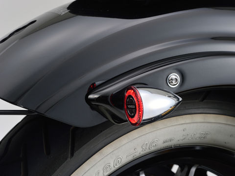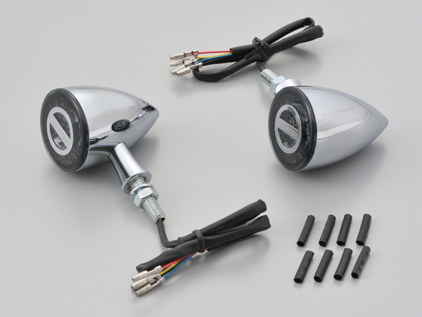 ベーシックな砲弾タイプ。クルーザーモデルの最新テールカスタム。テールランプ一体型のリア側専用ウインカー。LED/通常点灯式材質:アルミニウム(ハウジング)ライトスモークレンズクロームタイプ:テールランプ一体型のリア側専用ウインカー。本体は M8 ネジ、ナットによる簡易な取り付け。消費電力:約 1.1W(1個)※商品により異なります。レンズ部をご確認ください。※消費電力が少ないため、車両によってはLED対応ウインカーリレー(99109/95437)が別途必要です。※テールランプ一体リアウインカーを取り付ける場合、現在ご使用のテールランプは取り外してください。※製造ロットにより付属の熱収縮チューブはギボシ部に装着済みの場合があります。