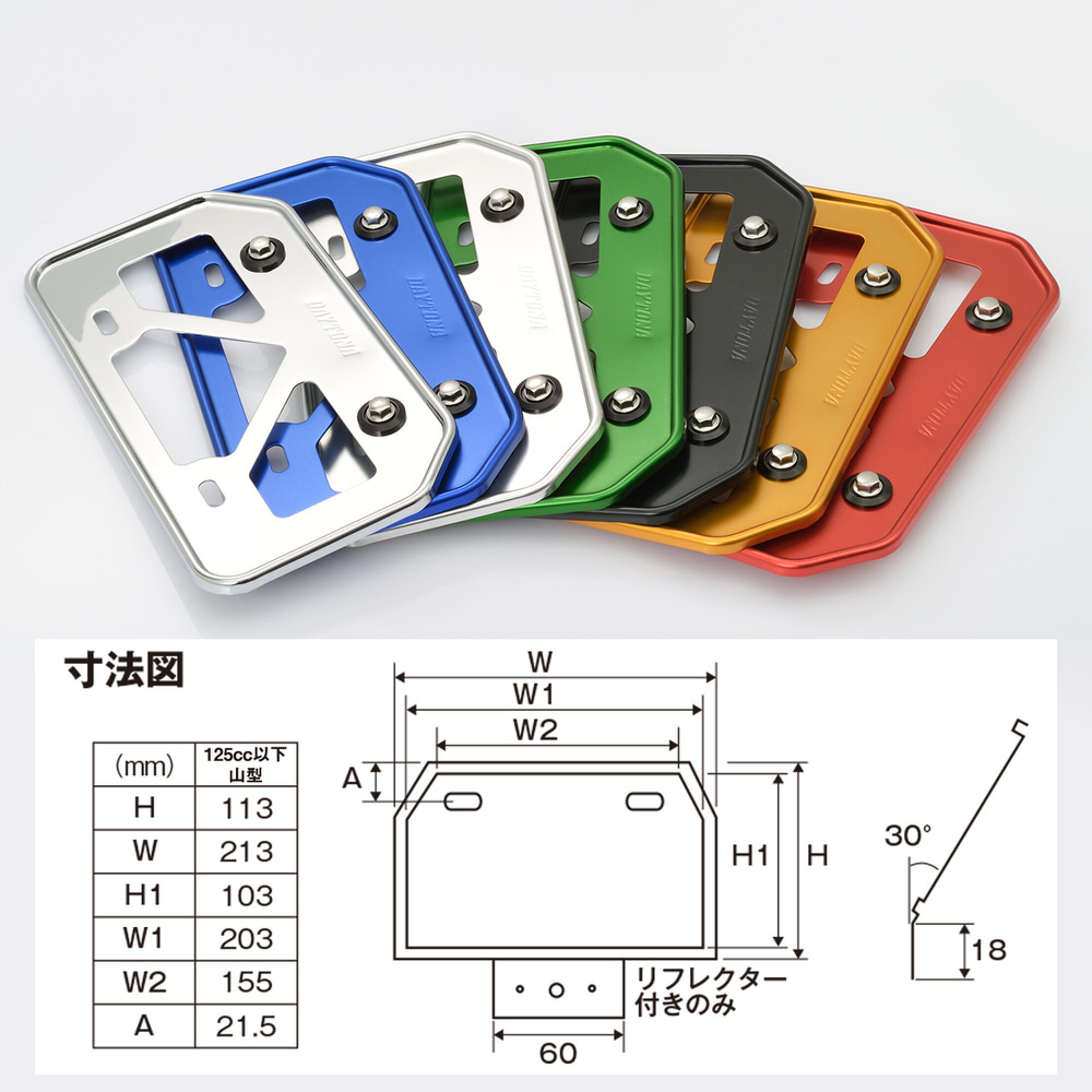 振動によるナンバープレートのひび割れや破損を予防します。1mm厚アルミ材を大胆に肉抜きすることで必要な強度を保ちつつ極限まで軽量化しました。板厚が薄いのでフチのプレスラインもシャープになりスタイリッシュ。ナンバープレートのドレスアップに最適です。アルミナンバープレート×1フランジスペーサー×2/フランジボルト(M6×15mm)×2/フランジナット(M6)×2/ウレタンスポンジ×4※取付工具は付属しません。※必ず取り付けするナンバープレートの形状をご確認ください。※取り付けするフェンダーの形状によっては装着できない場合があります。※プレート自体に防振効果はありません。※付属のボルトで長さが足りない場合は、車両に合わせて適切な長さのボルトを別途ご用意ください。