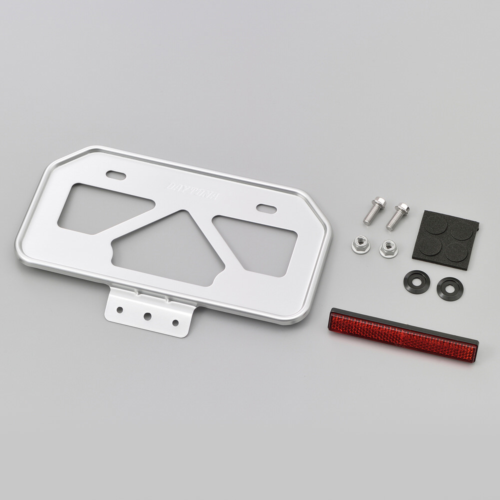 振動によるナンバープレートのひび割れや破損を予防します。1mm厚アルミ材を大胆に肉抜きすることで必要な強度を保ちつつ極限まで軽量化しました。板厚が薄いのでフチのプレスラインもシャープになりスタイリッシュ。ナンバープレートのドレスアップに最適です。アルミナンバープレート×1/リフレクター×1フランジスペーサー×2/フランジボルト(M6×15mm)×2/フランジナット(M6)×2/ウレタンスポンジ×4※取付工具は付属しません。※必ず取り付けするナンバープレートの形状をご確認ください。※取り付けするフェンダーの形状によっては装着できない場合があります。※プレート自体に防振効果はありません。※付属のボルトで長さが足りない場合は、車両に合わせて適切な長さのボルトを別途ご用意ください。