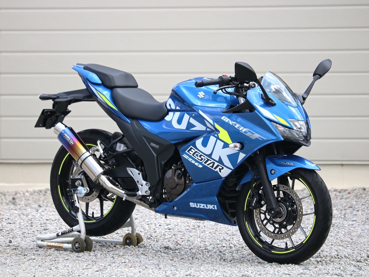 焼き色チタン仕様:重量3.33kg(ノーマルマフラーは6.89kg。 ボルトを含んだ重量)ベンチテストにより徹底的に性能をチェック、ジクサー250/SF250の特性をより活かすべく開発しました。パイプワークを駆使し管長及び適切なパイプ径を求めシャーシダイナモでベンチテストを繰り返し行い、アクセルレスポンスの強化、低速域をスポイルする事無く常用域である低中速域からパワーが立ち上がり、中高速域からは大幅なパワーの上乗せに成功。ギクシャクするエンジンブレーキも緩和してくれます。ラウンドタイプは中高速域に重点をおいた仕様でシングルレーサーを思わすパワーフィールを実現、重低音の効いたサウンドはワイルドなテイストを残しながらもアクセルを開けた時の耳に衝く破裂音を程よく抑制。音量は余裕をもってクリアしつつもシングル特有のパルス感、フルエキならではのレスポンス感やダイレクトなパワー感を堪能して頂けます。
