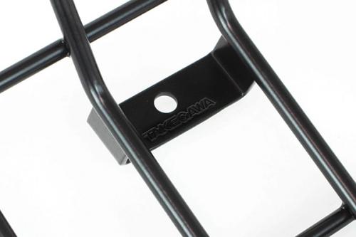ハンドルとシートの間にあるスペースに本製品を装着することで、レインウェアやバックを付属のゴムロープにより固定することが出来ます。前カゴ、フロントキャリア、リアキャリア、リアボックスなど前後に荷物を置くのは、盗難が不安という方にもお薦めです。乗車時、シフトチェンジ、リアブレーキ時に影響を及ぼさない範囲で、キャリア面積を大きく確保しています。又、荷物の脱落を防止する為、下部に荷物止めとなる折り返し、ゴムネットやゴムバンド等を引っ掛ける左右の突起、荷物フックとして使用出来る中央上部の小型フレームを採用するなど、実用性を重視した設計になっています。表面処理はブラック塗装センターキャリアキットには、荷物固定用“ゴムロープ”が付属しています。推奨積載重量:1.0kg