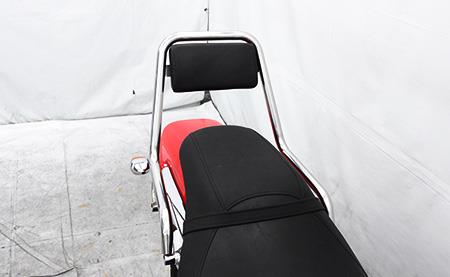 安心して安全にタンデム走行ができる機能面を重視した商品です。急発進時、横揺れ時、ブレーキング時の転落を防止し、子供から大人までしっかりとタンデムを快適にサポートしてくれます。タンデム走行テストを繰り返し開発した、車種専用特別設計です。バフ掛けを施していますので、高級感タップリに仕上がっています。バーの直径は25mmと極太で、パッセンジャーが握りやすく力を入れやすいので、安全性も高くなっております。表面素材にはノーマルシートと似たシート生地を使用していますので、取って付けた感じは無くとても自然にマッチします。オリジナルバックレストは型から興して製作していますので、価格を抑えることに成功し見た目も良く耐久性に優れたしっかりとした作りになっています。
