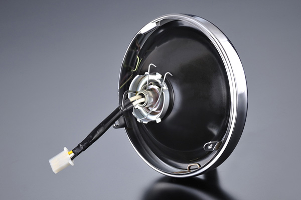 モンキー・APEのノーマルライトケースにそのまま装着レンズ径130mmPH7/T19仕様(電球は付属しません)バルブ変換アダプター・専用ソケット付属PH7/T19バルブ変換アダプターについて純正ヘッドライトにはスピードメーターが内蔵されており、従来のH4バルブではスピードメーターケーブルにH4バルブのソケットが干渉し装着不可能でしたが、PH7/T19バルブ変換アダプターを使用することによって純正バルブを使用可能になり、ランプのソケット部分が干渉することなく、純正ヘッドライトケースに装着できるようになりました。