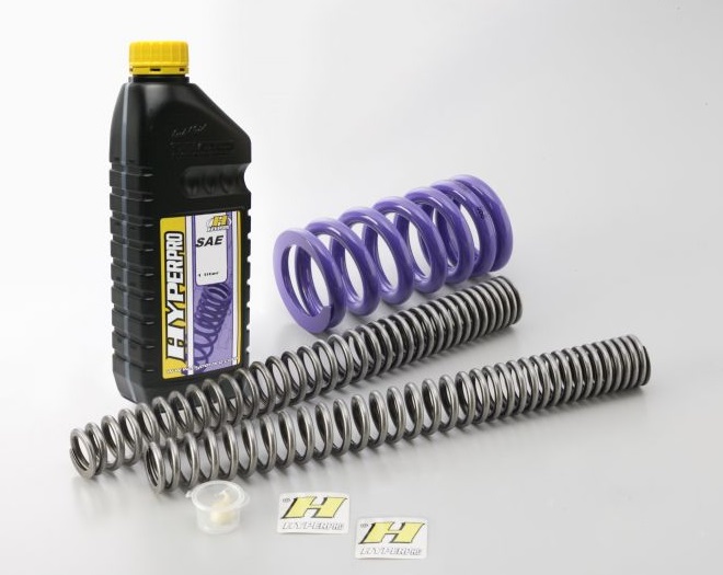 ハイパープロ社が独自設計する『コンスタントライジングレート』をもつサスペンションスプリング。サスペンションの動きに追従してバネレートが常に変化。柔らかすぎず硬すぎない状態を維持し、高負荷のコーナリングや急ブレーキ時も踏ん張る力を併せ持ちます。コーナー手前のブレーキング時におけるキャスタの変化を適正化し、次の動作に移りやすくします。コーナリング中の細かなギャップを吸収し、乗り手の邪魔となる振動をなくします。通常のスプリングと違い一定のバネレートがないため、共振することがありません。コンピューター制御の工作機械で巻き取られたスプリングにショット処理を施し、性能の劣化につながる表面の微細なキズを取り除きます。さらに、完成後には一本ずつテスターによる性能検査が行われます。ハイパープロ社の本拠地オランダでは、救急バイク全車にハイパープロのスプリングが装着されています。フロントスプリング部材番号:1641フォークオイル番手/油面:SAE#15x2/180mmプリロード調整:15 TURNS OPENサグ値:70-80 MMコンプレッション調整:5CLICKS OPENリバウンド調整:1.5 TURN OPENリアスプリング部材番号:1639プリロード調整:HPA ON MINIMALサグ値:70-80 MMコンプレッション調整:15 CLICKS OPENリバウンド調整:1.25 TURNS OPEN