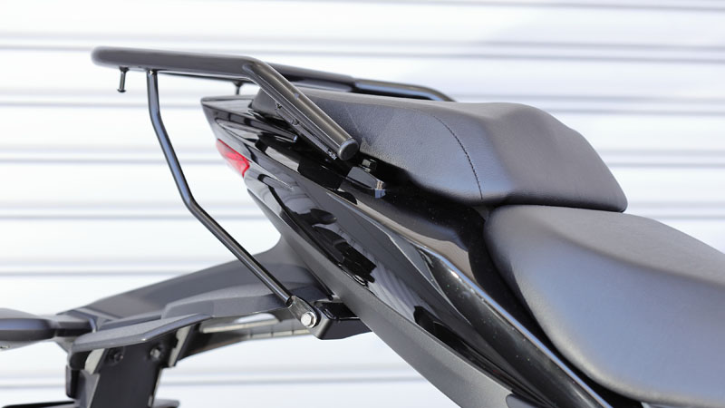 雨具や防寒着等、ツーリングギアの積載に大変便利です。荷台部分がフラットな荷物を積みやすいデザインとなっております。【材質】スチール製【色】ブラック【最大積載量】5kg(BOX等の重量も含む)