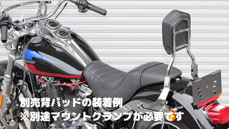 2018年以降のソフテイルモデルに対応したシーシーバーです。キャリア同様にデタッチャブル機能を有し、純正オプションのバックレストパッドにも対応した造り。(別途クランプが必要)※純正オプション ファスト・ドッキングハードウェアキット:2300645(クローム)、52300646(グロスブラック)を別途御用意下さい。【シーシーバー高さ】370mm【カラー】クロームメッキ