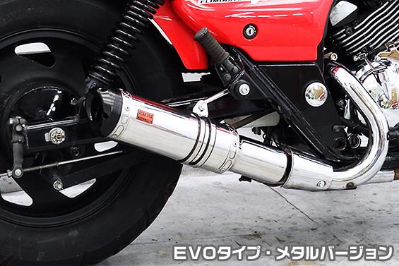 こちらの商品は前期用商品となります。(エキパイ接続部分の形状が異なり、前期・後期それぞれ専用品となりますのでご注文の際にはお間違いの無いようよくご確認下さい。)お客様の車両をご確認いただいた上でご注文お願いいたします。※平成22年4月1日より施行された認証制度に適合する認証マフラーではありません。※ サイレンサー部分だけ取り替えるスリップオンタイプの商品です。ご理解の程よろしくお願い致します。メタルバージョンはSUS304ステンレスをバフ磨きでピカピカに仕上げています。アルミ素材から削り出したビレットタイプのエンドに、ブラックアルマイト処理を施したEVOタイプ消音用のバッフルが2個装備されているダブルバッフル仕様となっており、バッフル無し、バッフル1個装着、バッフル2個装着と3種類の排気音を選べるサウンドセレクトスタイルになっています。バッフルはSUS304ステンレスタイプ(EVOタイプはプレートタイプ)とアルミタイプの2種類のバッフルが装備されています。音量はバッフル2個装着時の排気音量が 約88db(法定規制値内音量)、バッフル1個装着時の排気音量が 約90db、バッフル非装着時の排気音量が 約92db です。サイレンサーは、2点止めになっていますのでしっかりと固定でき、耐久性にも優れています。無加工ボルトオンにて装着できますので、必要な工具があれば簡単に取り付けできます。サイレンサーバンドにはスリットタイプを採用してデザインにもこだわっています。サイレンサーの固定にはサイレンサーバンドを採用し、バフ仕上げを施したSUS304ステンレス製丸棒で組んだステーを介して固定しておりますので、従来のステーの固定より車体と調和した高級感あふれるマフラーです。