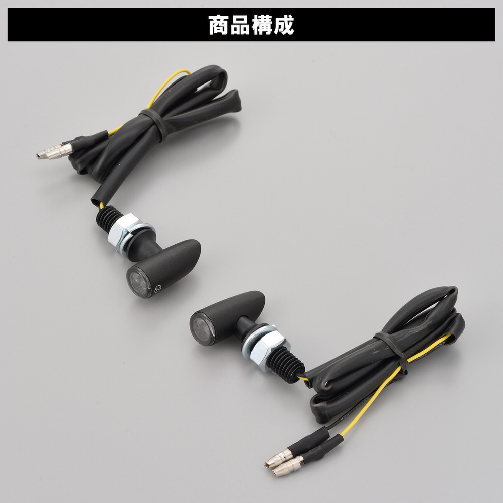 驚きの小ささ。ハイサイダーから極小サイズのウインカーが登場。レンズ径11mmながら点灯時は驚きの明るさです。フロント/リア兼用のウインカー。2個入り(1セット)フロント/リア兼用車検対応LED/通常点灯式ブラックアルマイト/ライトスモークレンズ※消費電力が少ないため、車両によってはLED対応ウインカーリレー(99109/99989)が別途必要です。