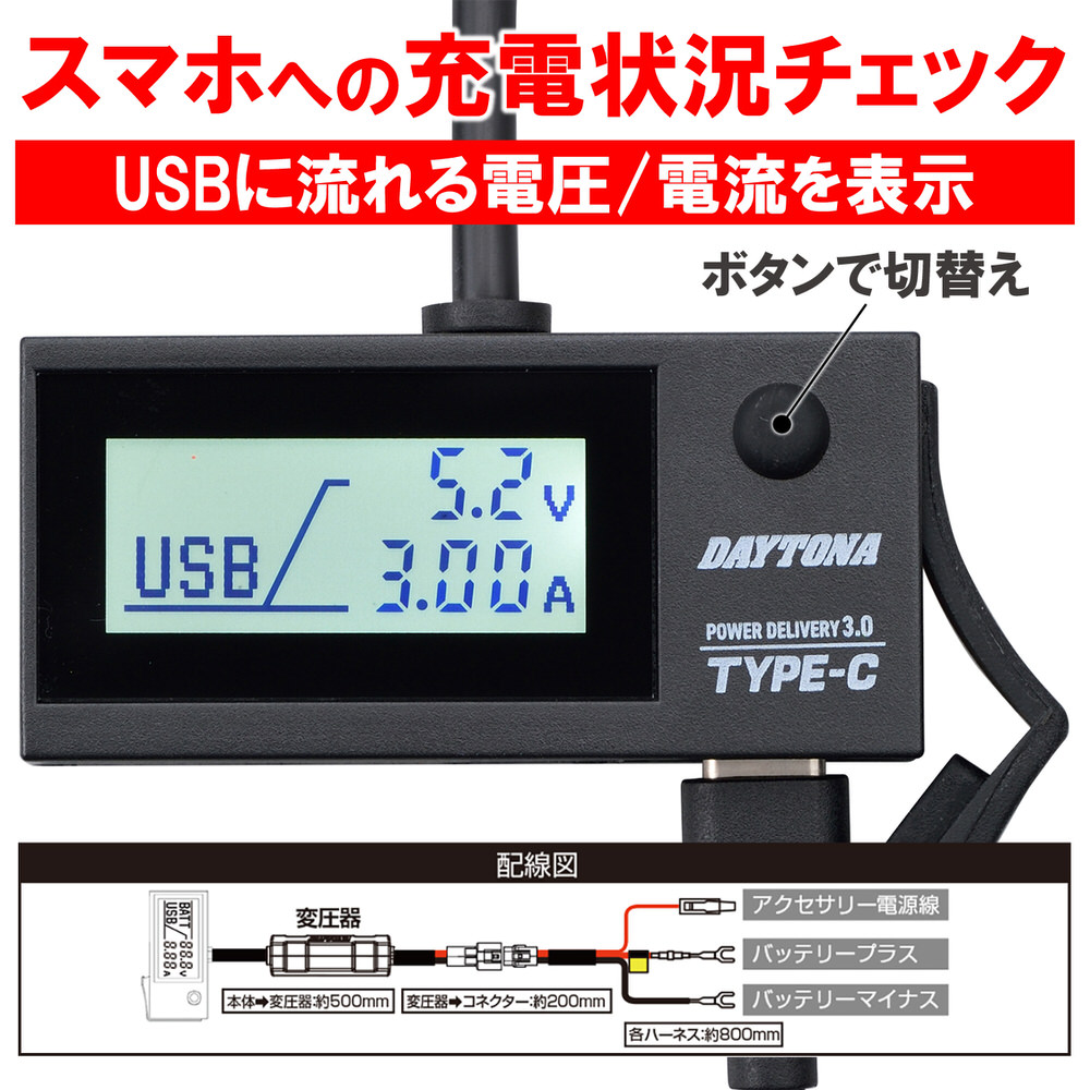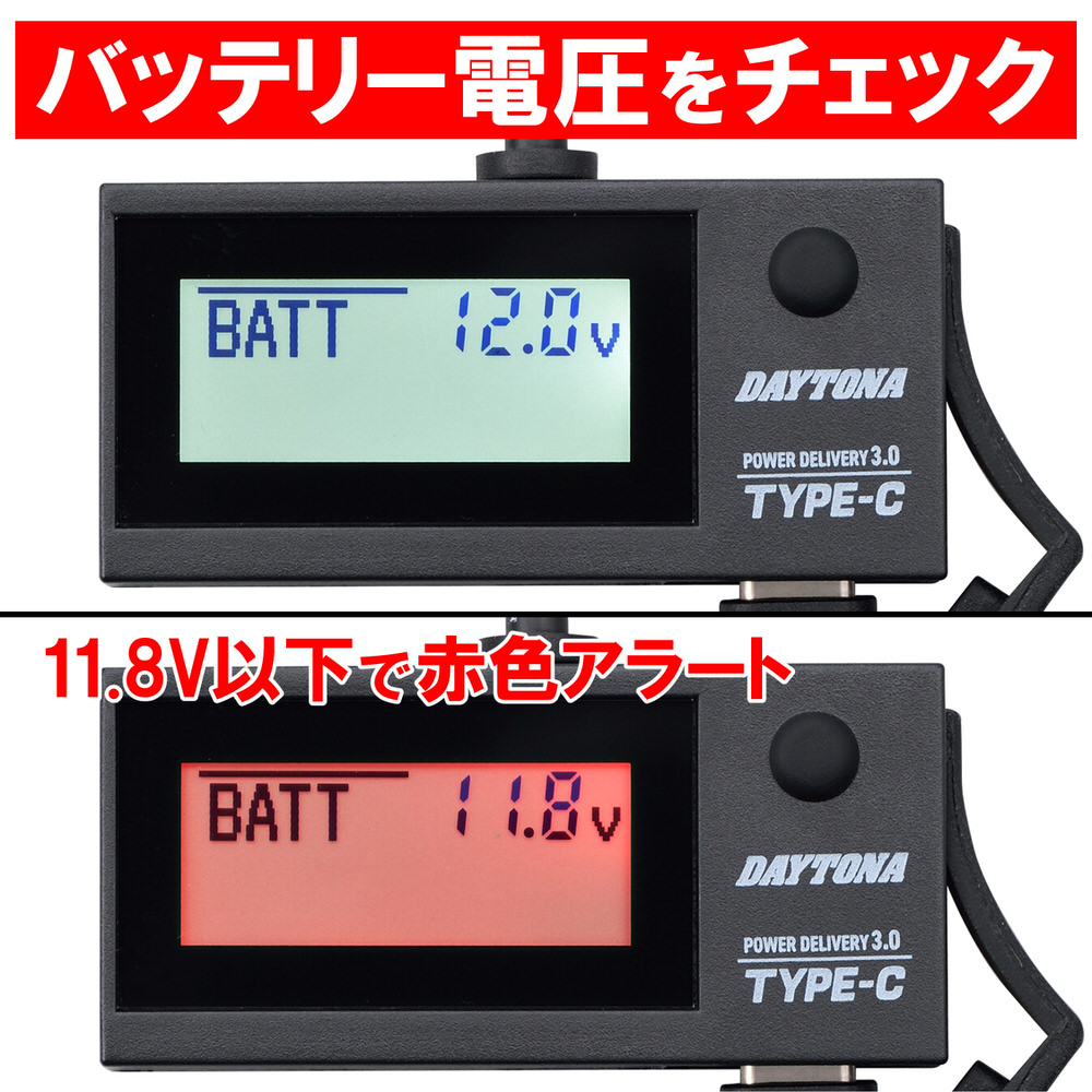 デジタル電圧計&USB電源 Type-C イープラスチャージャー PD3.0対応 18W iPhone/Android対応 DAYTONA(デイトナ)