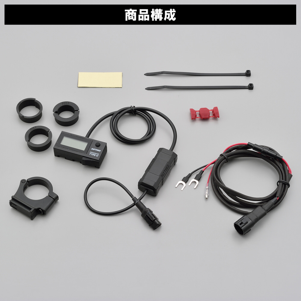 電気が見えるUSB電源。【USB Type-CコネクターでUSB PD対応】USB PD(パワーデリバリー)対応で最大18W(5V/3A、9V/2A、12V/1.5A)出力可能。【バッテリー入力電圧、USB出力電圧/電流を切り替えて表示】バッテリー電圧は11.8V以下でバックライトが赤色となるアラート付き。USBの電圧・電流表示で、スマホへの充電状況が分かる。【φ22.2/25.4/28.6/31.7mmなどのテーパーバーにも対応】極太のテーパーバーハンドル対応。本体がハンドルクランプに当たらない高さに設定。USB Type-Cバッテリー入力電圧、USB出力電圧/電流を切り替えて表示USB PD3.0対応/最大18Wハンドルクランプ:φ22.2/25.4/28.6/31.7mmに対応ユニット本体×1/ハンドルクランプ×1/ハンドルクランプスペーサー(22.2用/25.4用/28.6用)×各1/ハーネス(ミニガラス管ヒューズ φ5.2x20/250V5A)×1/両面テープ×1/結線コネクタ×1/結束バンド×2※本品からスマートフォンへの充電ケーブルは別売りです。※本商品は電圧計測のため常時接続しますが、待機電力を消費するので定期的に充電するなどバッテリーメンテナンスを行なってください。※急速充電に対応していない機器では充電できない恐れがあります。