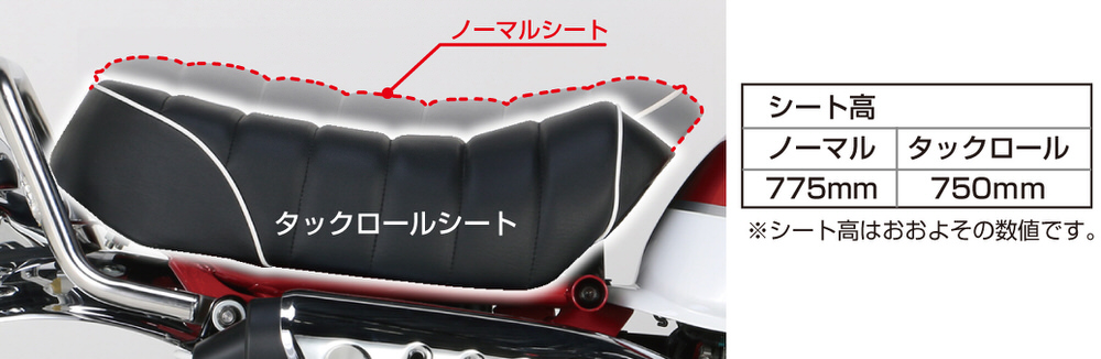 スタイルを崩さないタックロールスタイルのカスタムシート。ノーマルに比べ沈み込みが少なく、シート高を低くしたフラットタイプでドレスアップにも最適です。シート表皮:合成皮革シートベース:PPキタコ社製グラブバー、サイドグリップ、リヤキャリアー使用可※シートブラケット、取付ボルト類ノーマル再使用※チェック柄タイプは表皮の材質上、降雨、洗車後に縫い目より多少水が染み出る場合があります。