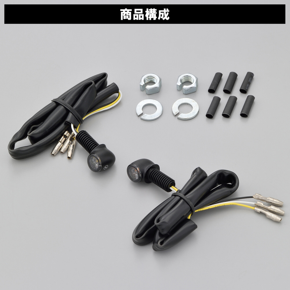 驚きの小ささ。ハイサイダーから極小サイズのウインカーが登場。レンズ径11mmながら点灯時は驚きの明るさです。ポジションランプ付きのフロント側専用ウインカー。2個入り(1セット)フロント専用 ホワイトポジション付き車検対応LED/通常点灯式ブラックアルマイト/ライトスモークレンズ※消費電力が少ないため、車両によってはLED対応ウインカーリレー(99109/99989)が別途必要です。
