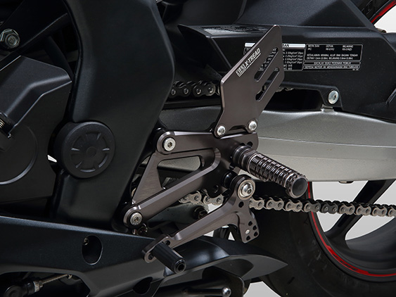 ステップKIT X-TREADは、ライトウェイトミドルスポーツの走りの可能性を広げ、ツーリングからスポーツ走行まで様々なシーンでライディングを支えます。可動部にベアリングを組みこんだ高精度のアルミ削り出し部品、ハイグリップなステップバーなど、その効果はポジションの最適化だけではなく、シフトやブレーキの操作感、コーナリングでの荷重抜重のコントロール性などライダー動作をダイレクトにマシンに伝えます。・正チェンジ仕様・ABS、ブレーキスイッチ対応