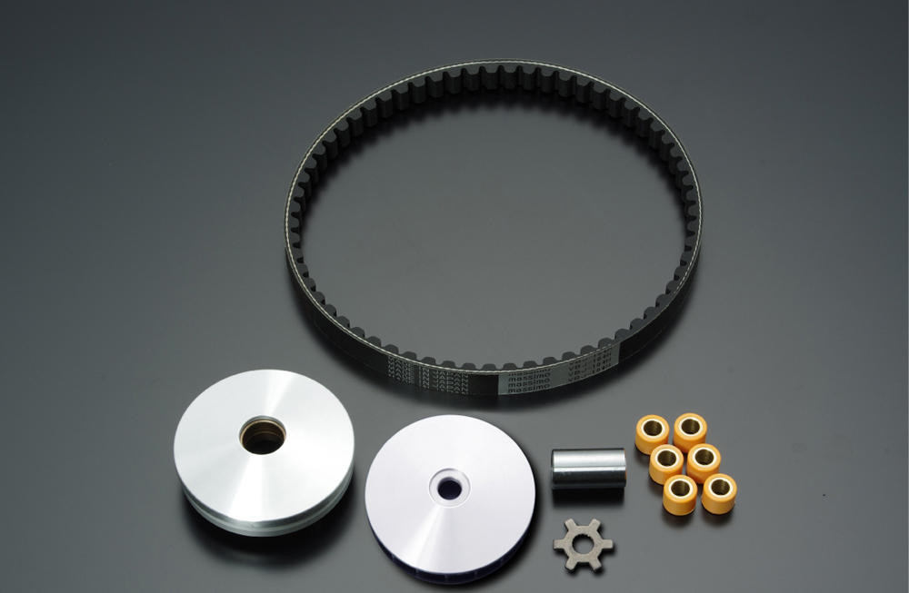 【商品内容】・プーリー本体 ・ドライブVベルト ・プーリーボス ・ウエイトローラー ・プーリーフェイスグロンドマンのハイパフォーマンスドライブキットは装着するだけで簡単に駆動系をリフレッシュできる優れものになっています。車種別にキット内とのプーリーの特性も考慮して適切な重量のウエイトローラーを付属していますので、重量セッティングの必要もありません。更に、加速特性やトルク感のアップを体感、最高速もアップします。スクーターは駆動系パーツが変速機を持っています。これらのパーツは走行距離により交換が必要です。メンテナンスする事で、燃費の向上も期待できます。このキットを装着するだけで本来の性能はもちろん、プラスアルファのポテンシャルアップ!セッティングの必要が全く無く、本キットを取り付けするだけで簡単にチューニングが完了します。取り付けの際は故障の原因となりますのでインパクトのご使用はお控え下さい。